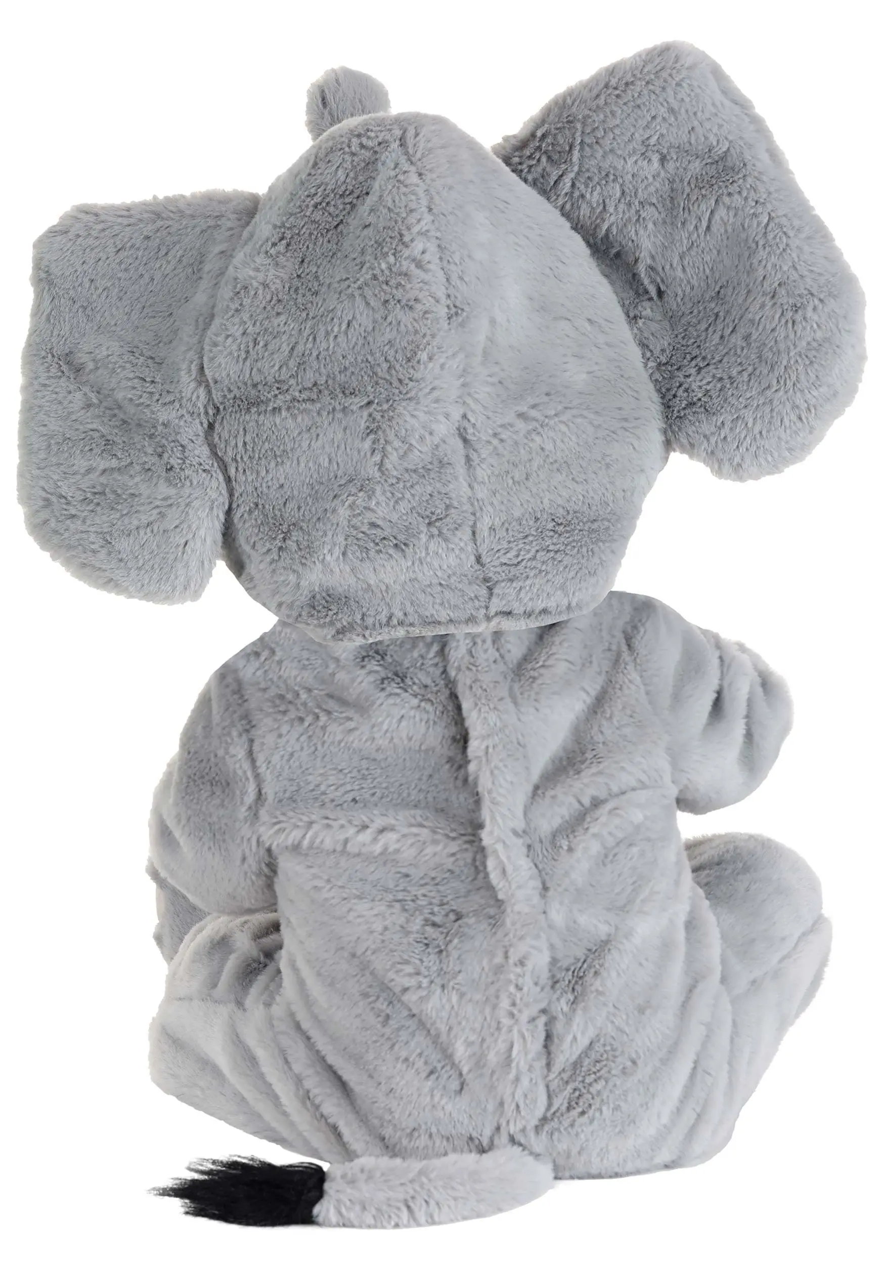 - Plush hood has foam-backed ears, poly-filled trunk, embroidered eyes w/ hook and loop fastener under chin