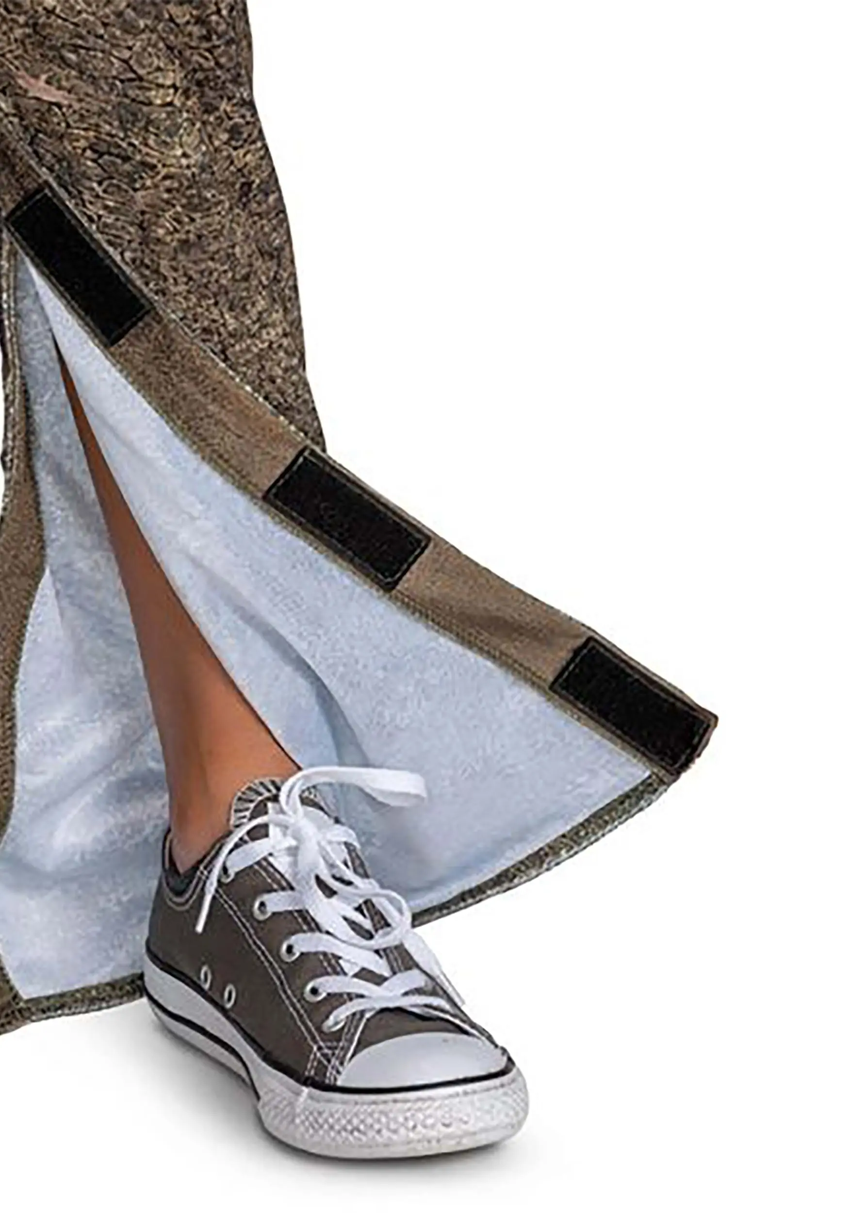 - Openings at center back, pants inseams, left front waist, and sleeves from cuff to elbow, all close w/ hook & loop fastener