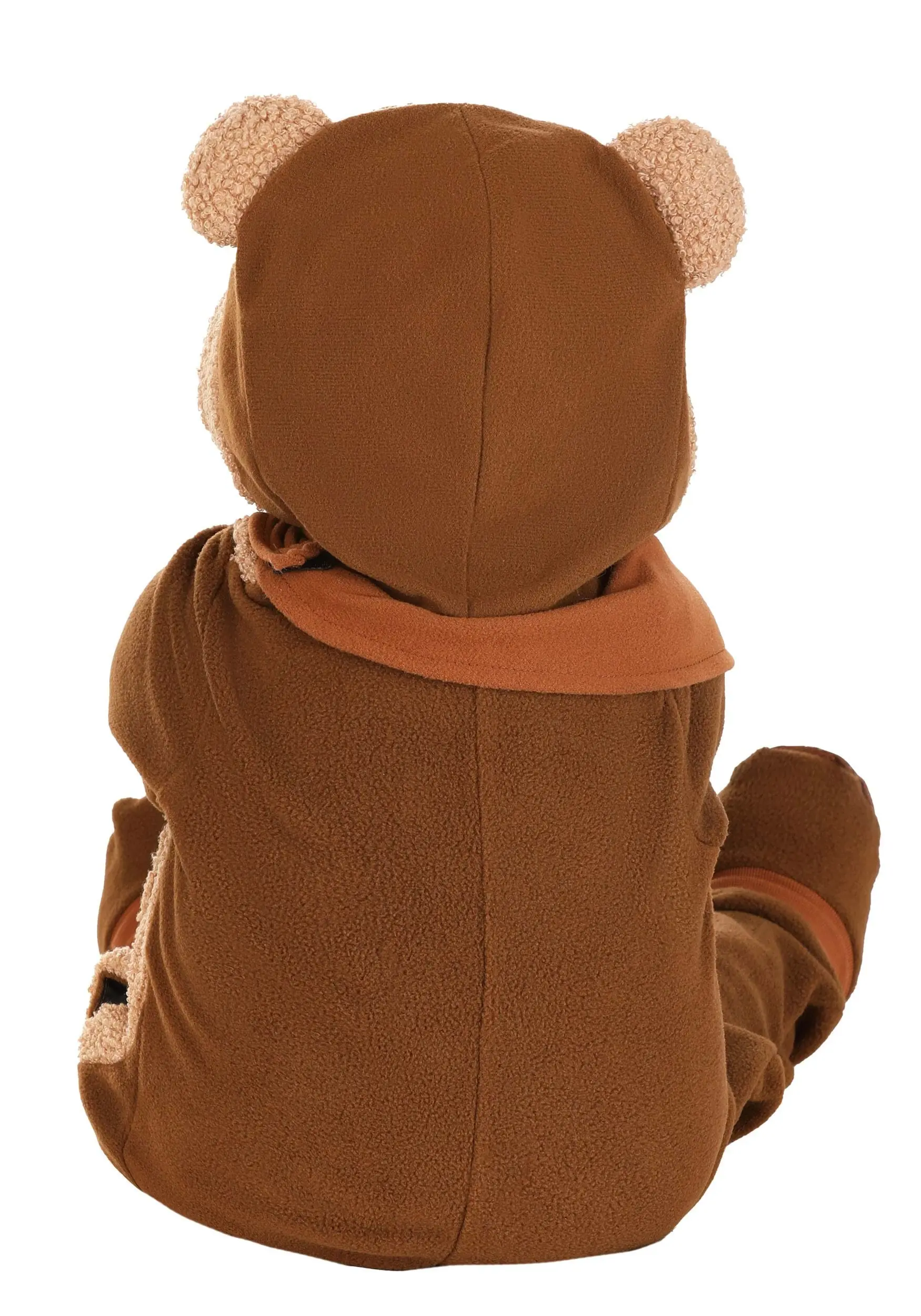 Whether long ago in a galaxy far away or in the here and now, your child will be the most adorable sight ever when he or she wears this officially licensed Star Wars Ewok Costume for Infants! The soft brown jumpsuit is easy to fasten and has contrasting panels of textured fabric sewn to the front. The soles of the matching booties are printed with paw print graphics and the words “Yub Nub.” The outfit’s attached hood is decorated with fabric ears.